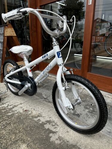 キックバイクが普及したという理由で、補助輪仕様は もうつくらないんだそうである。時代だね。 この辺りだとまだそうでもないんだけどな。 補助輪ついてると三輪車の代わりになるから、 2歳半くらいから自転車に触れられていいんだけどね。 そーいうわけで…